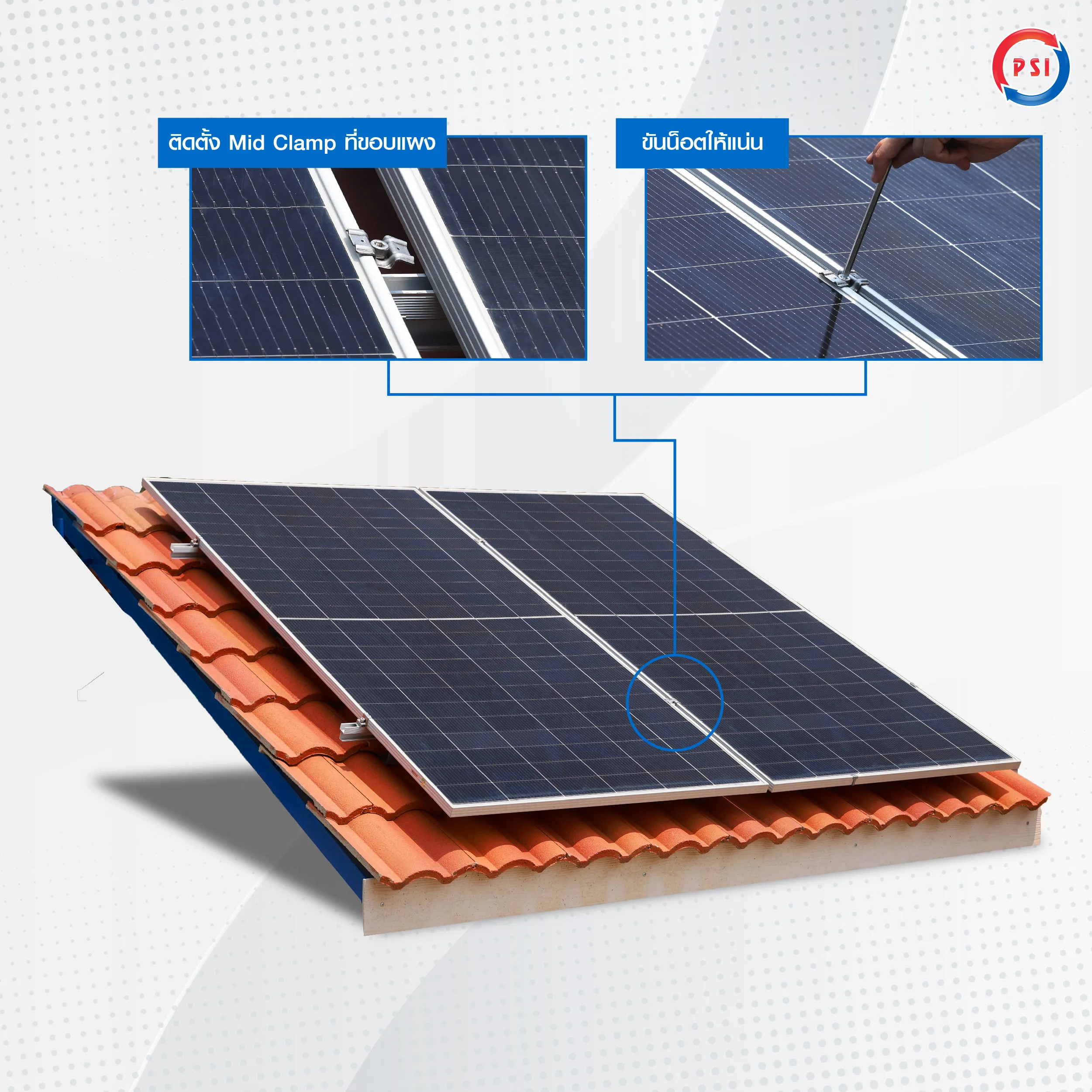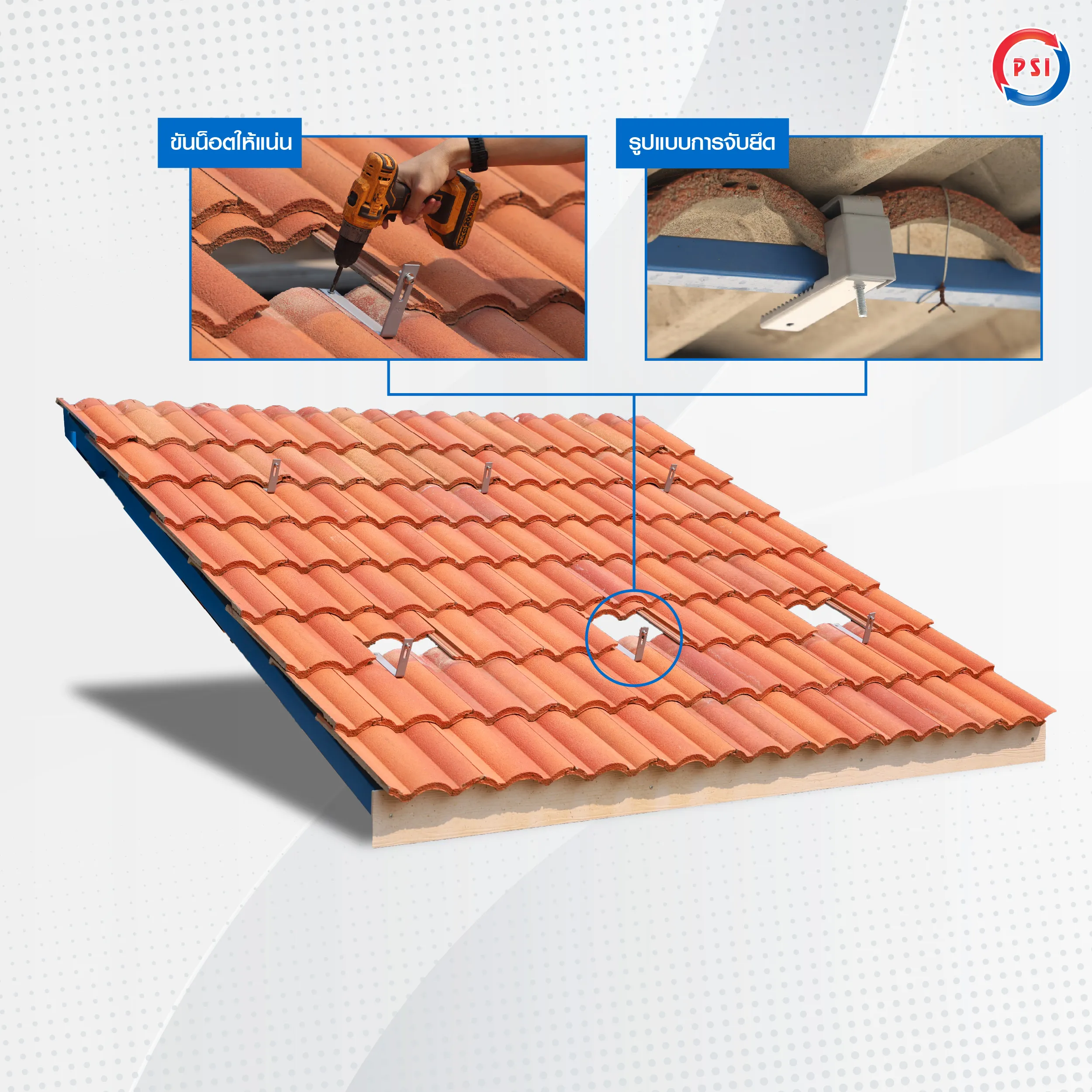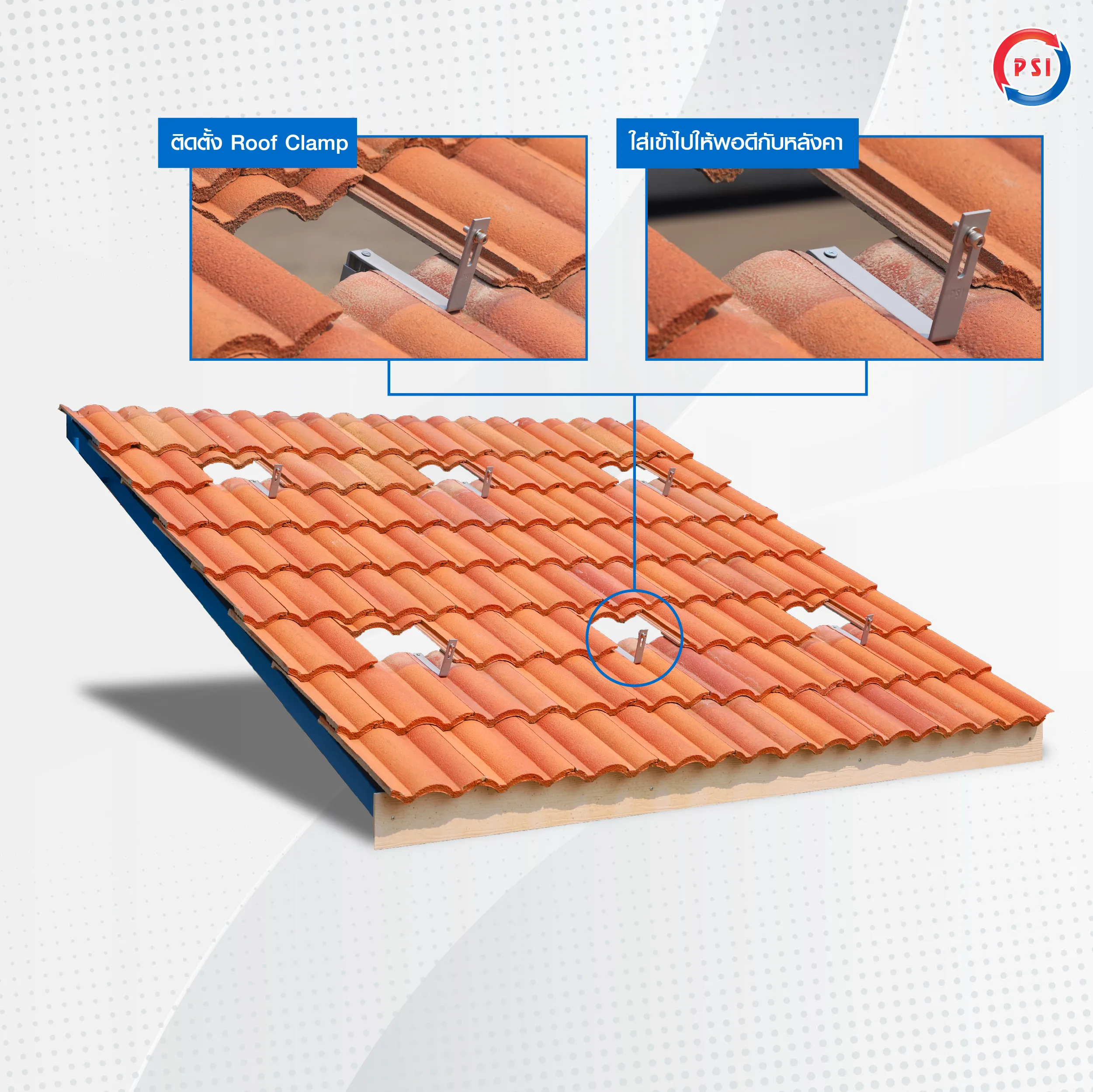 2. การติดตั้งที่ได้มาตรฐาน: หากเลือกใช้ Roof Clamp ที่เหมาะกับประเภทหลังคา จะช่วยลดลดความเสียหายต่อกระเบื้องหลังคาได้