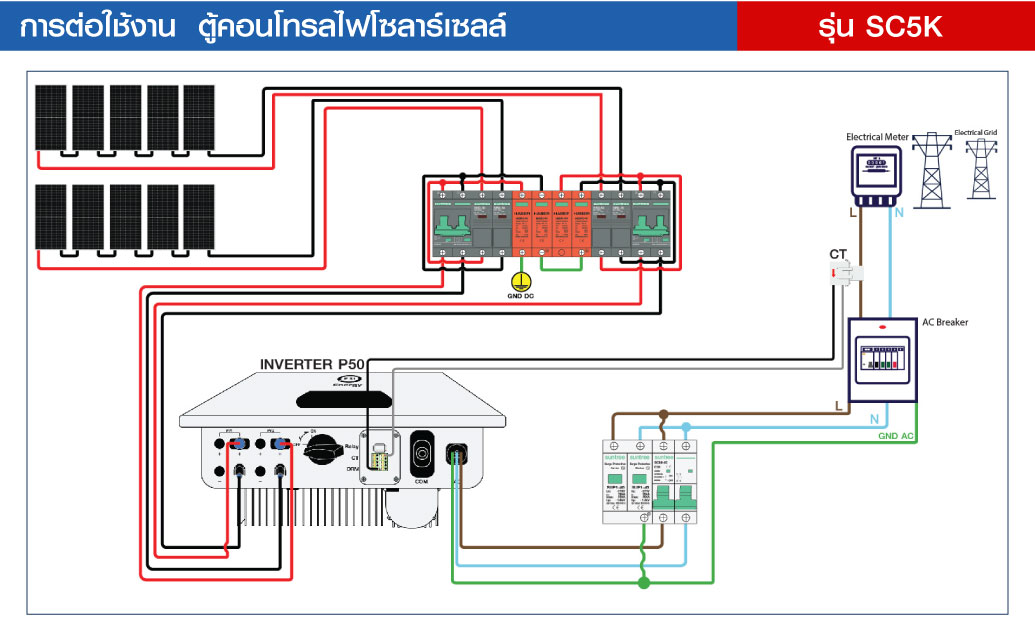 | ชื่อสินค้า | ตู้คอนโทรลไฟโซลาร์เซลล์ รุ่น SC5K |