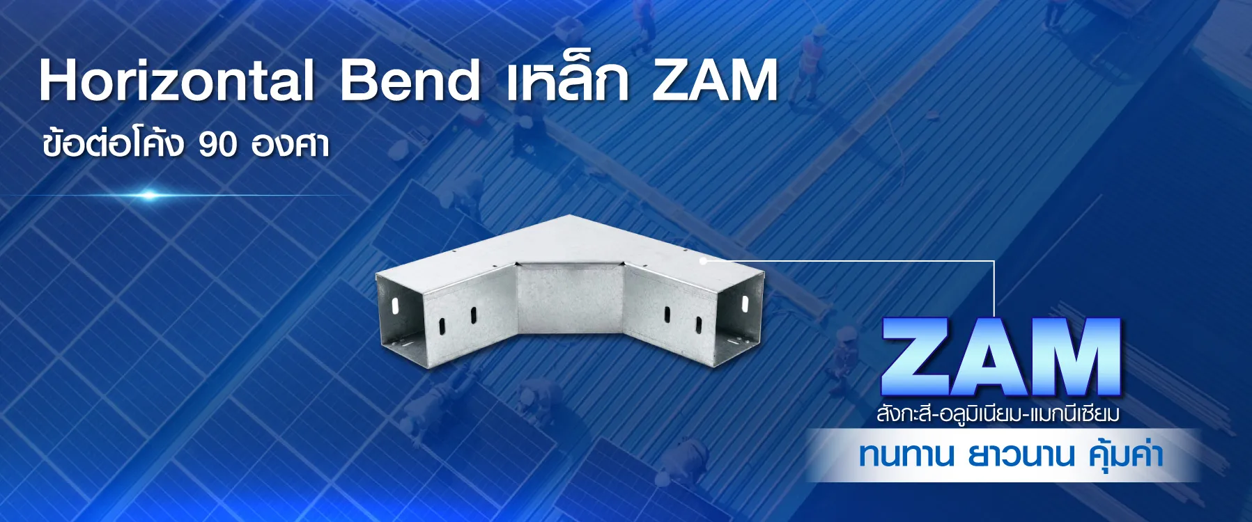 Horizontal Bend ข้อต่อโค้ง 90 องศา (Horizontal Bend) ผลิตจาก เหล็ก ZAM ทนสนิมและการกัดกร่อนสูงกว่ากัลวาไนซ์ทั่วไป เหมาะสำหรับงานระบบไฟฟ้าและโซลาร์เซลล์ โครงสร้างแข็งแรง แม่นยำ เชื่อมต่อรางได้แน่นหนา มั่นคง อายุการใช้งานยาวนาน