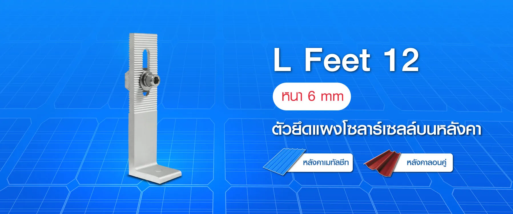 L Feet คือ อุปกรณ์จับยึดแผงโซลาร์เซลล์กับโครงสร้างหลังคา ทำหน้าที่เป็นจุดยึดระหว่างโครงหลังคาและระบบติดตั้งแผงโซลาร์เซลล์