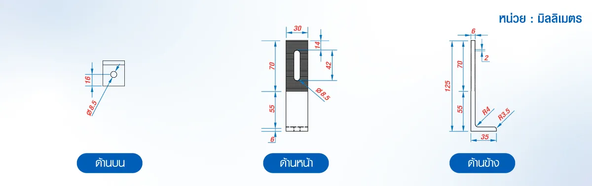 ขนาดและรายละเอียดอุปกรณ์ติดตั้งโซลาร์เซลล์