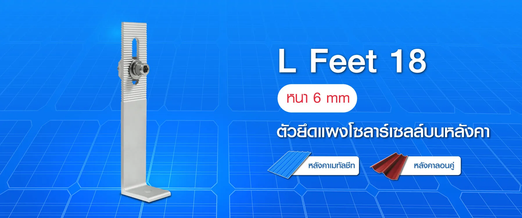 L Feet คือ อุปกรณ์จับยึดแผงโซลาร์เซลล์กับโครงสร้างหลังคา ทำหน้าที่เป็นจุดยึดระหว่างโครงหลังคาและระบบติดตั้งแผงโซลาร์เซลล์