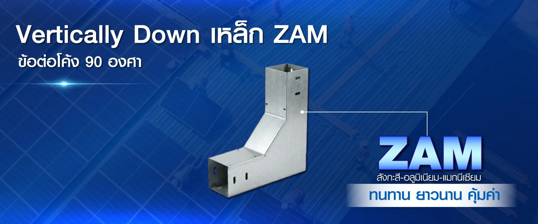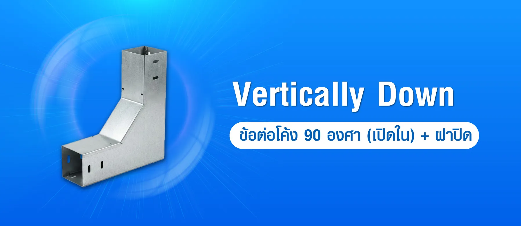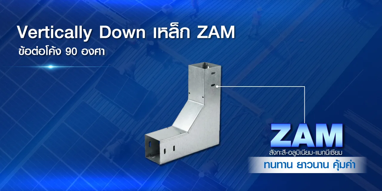 Vertically Down คือ ข้อต่อโค้ง 90 องศา เป็นอุปกรณ์สำหรับเปลี่ยนทิศทางรางเดินสายไฟจากแนวนอนสู่แนวดิ่ง ผลิตจาก เหล็ก ZAM ซึ่งเป็นเหล็กเคลือบโลหะผสมที่มีคุณสมบัติป้องกันการกัดกร่อนสูง ทนสนิมได้ดีกว่าเหล็กชุบทั่วไป ใช้งานได้ยาวนาน